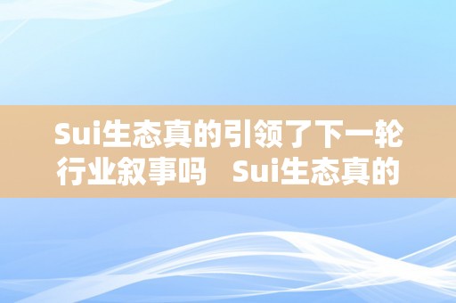 Sui生态真的引领了下一轮行业叙事吗 Sui生态真的引领了下一轮行业叙事吗