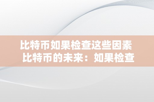 比特币如果检查这些因素 比特币的未来:如果检查这些因素会怎么样?