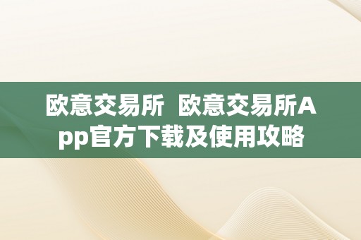 欧意交易所 欧意交易所App官方下载及使用攻略