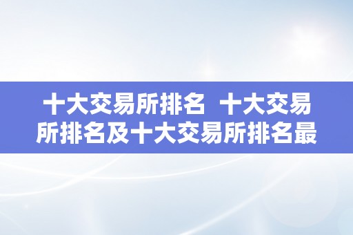 十大交易所排名 十大交易所排名及十大交易所排名最新