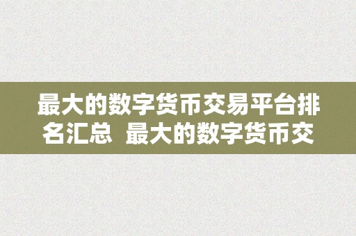 最大的数字货币交易平台排名汇总 最大的数字货币交易平台排名汇总:哪家交易平台实力最强?