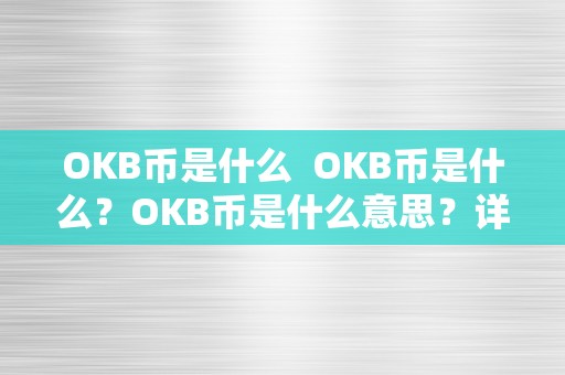 OKB币是什么 OKB币是什么?OKB币是什么意思?详细解读OKB币的含义和作用