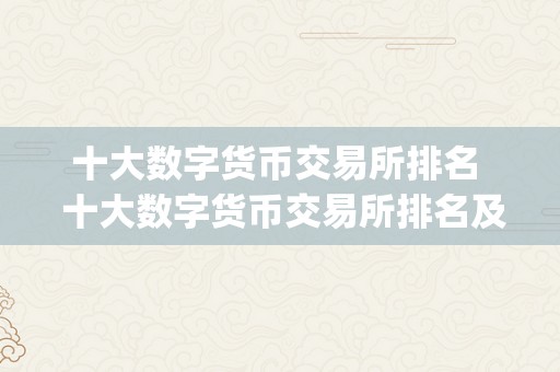 十大数字货币交易所排名 十大数字货币交易所排名及十大虚拟币交易app: 详细比较与分析