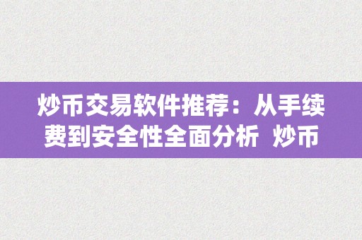 炒币交易软件推荐:从手续费到安全性全面分析 炒币交易软件推荐:从手续费到安全性全面分析及炒币交易app