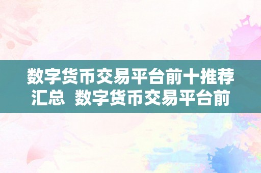 数字货币交易平台前十推荐汇总 数字货币交易平台前十推荐汇总:全方位评估,为您找到最适合的交易平台
