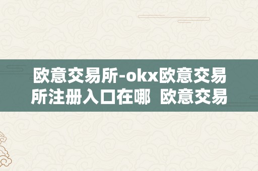 欧意交易所-okx欧意交易所注册入口在哪 欧意交易所注册入口在哪及欧意交易平台详解