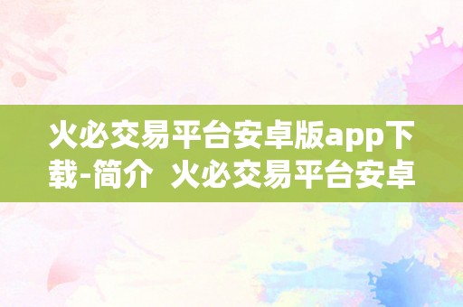 火必交易平台安卓版app下载-简介 火必交易平台安卓版App下载-简介