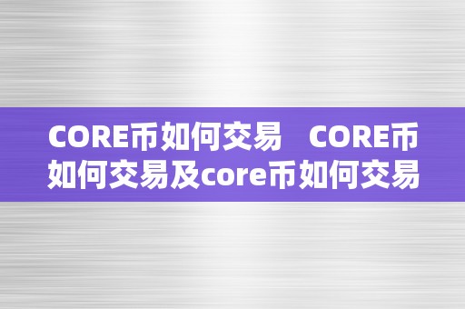 CORE币如何交易 CORE币如何交易及core币如何交易和变现