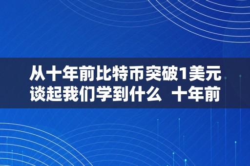 从十年前比特币突破1美元谈起我们学到什么 十年前比特币突破1美元:我们学到了什么?