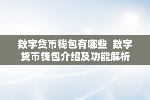 数字货币钱包有哪些 数字货币钱包介绍及功能解析