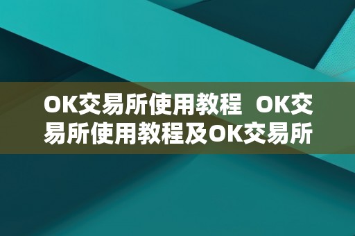 OK交易所使用教程 OK交易所使用教程及OK交易所怎么玩