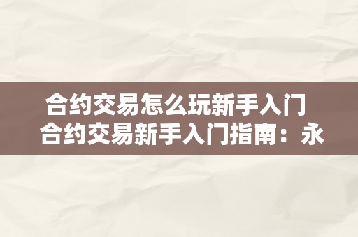 合约交易怎么玩新手入门 合约交易新手入门指南:永续合约交易怎么玩?
