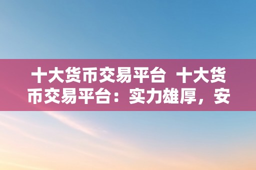 十大货币交易平台 十大货币交易平台:实力雄厚,安全可靠,值得信赖的交易平台推荐