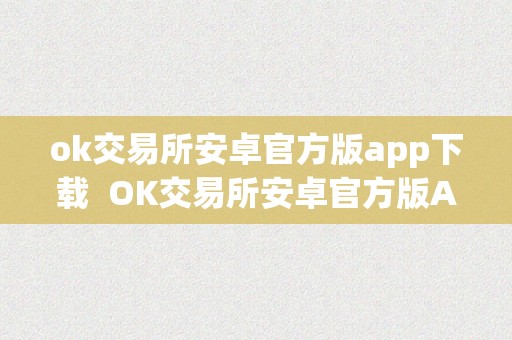 ok交易所安卓官方版app下载 OK交易所安卓官方版APP下载及OK交易所APP官网下载