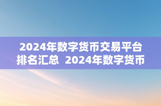 2024年数字货币交易平台排名汇总 2024年数字货币交易平台排名汇总:哪些平台在未来将成为领头羊?