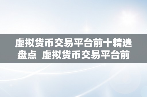 虚拟货币交易平台前十精选盘点 虚拟货币交易平台前十精选盘点:从安全性、交易费用、用户体验等维度进行比较