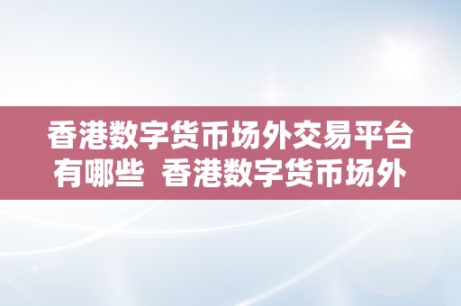 香港数字货币场外交易平台有哪些 香港数字货币场外交易平台