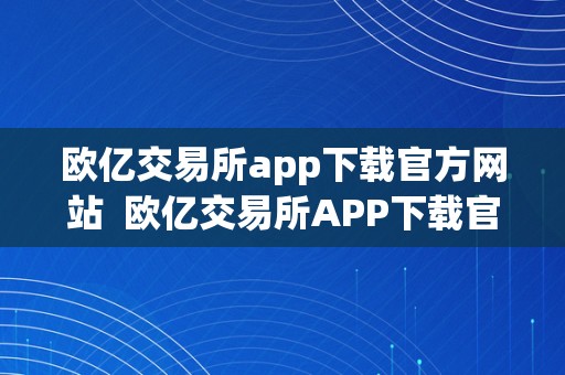 欧亿交易所app下载官方网站 欧亿交易所APP下载官方网站及欧意交易所APP官方下载