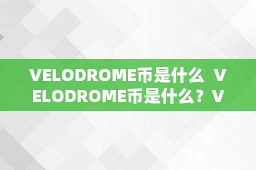 VELODROME币是什么 VELODROME币是什么?Velodrome币是什么币?详细解读VELODROME币的定义和特点