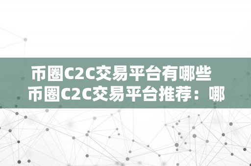 币圈C2C交易平台有哪些 币圈C2C交易平台推荐:哪些平台值得选择?