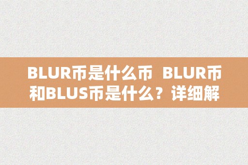 BLUR币是什么币 BLUR币和BLUS币是什么?详细解析这两种数字货币的特点与用途