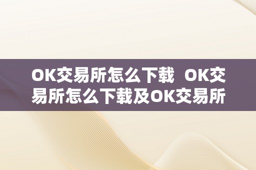 OK交易所怎么下载 OK交易所怎么下载及OK交易所怎么下载安装