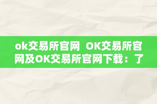 ok交易所官网 OK交易所官网及OK交易所官网下载:了解OK交易所的最新动态和下载最新版本的APP