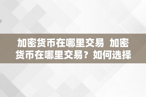 加密货币在哪里交易 加密货币在哪里交易?如何选择合适的交易所?