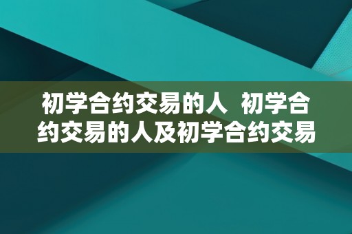 初学合约交易的人 初学合约交易的人及初学合约交易的人叫什么