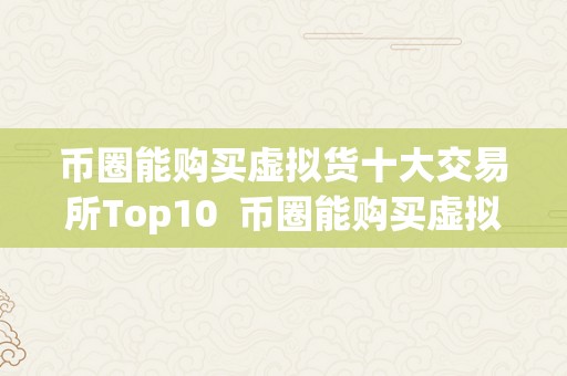 在币圈中,有很多知名的数字货币交易所,它们提供了安全、便捷的平台让用户进行数字货币的交易。以下是币圈能购买虚拟货十大交易所Top10: