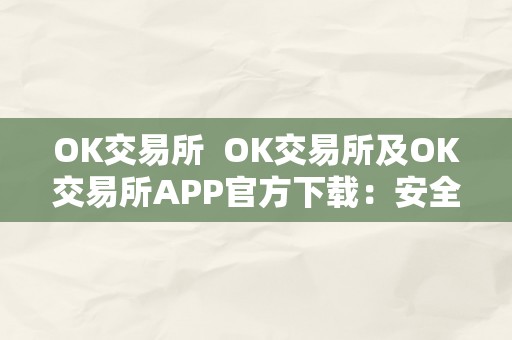 OK交易所 OK交易所及OK交易所APP官方下载:安全可靠的数字货币交易平台