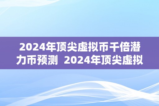 2024年顶尖虚拟币千倍潜力币预测 2024年顶尖虚拟币千倍潜力币预测及2021虚拟币千倍潜力币