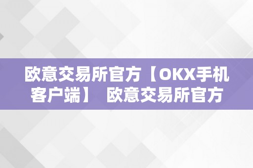 欧意交易所官方【OKX手机客户端】 欧意交易所官方【OKX手机客户端】及欧意交易平台