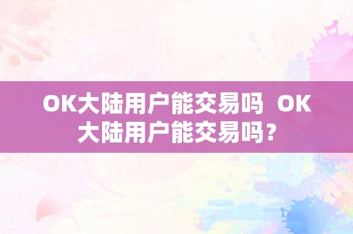OK大陆能交易吗?