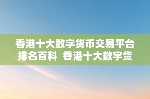 香港十大数字货币交易平台排名百科 香港十大数字货币交易平台排名百科:全面了解香港数字货币交易市场