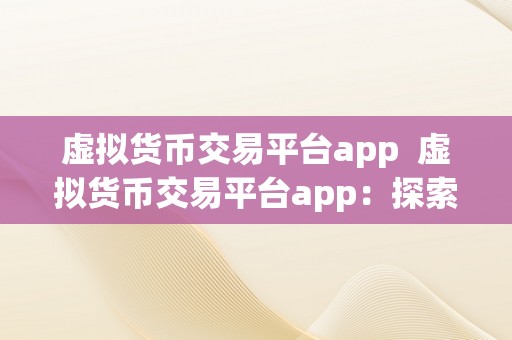 虚拟货币交易平台app 虚拟货币交易平台app:探索数字货币世界的便捷入口
