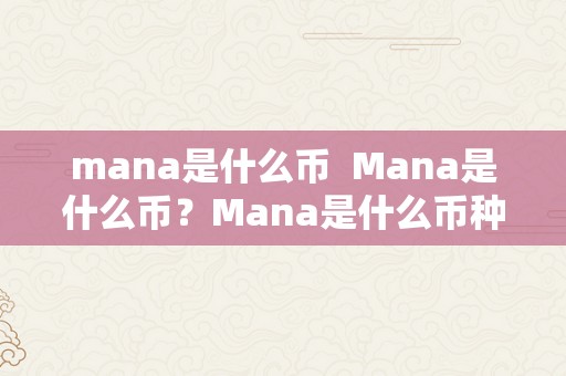 mana是什么币 Mana是什么币?Mana是什么币种?详细解读Mana数字货币的定义、特点和用途