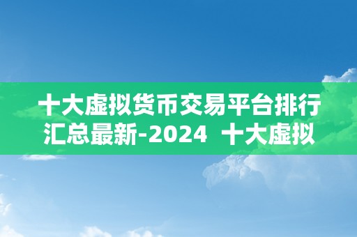 十大虚拟货币交易平台排行汇总最新-2024 十大虚拟货币交易平台排行汇总最新-2024