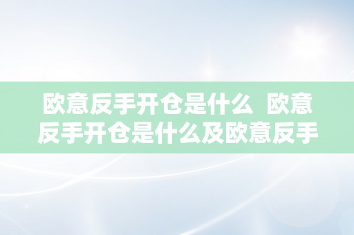 欧意反手开仓是什么 欧意反手开仓是什么及欧意反手开仓是什么意思啊