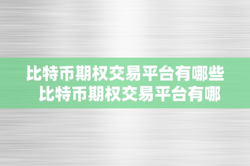 比特币期权交易平台有哪些 比特币期权交易平台有哪些?详细介绍比特币期权交易平台选择指南
