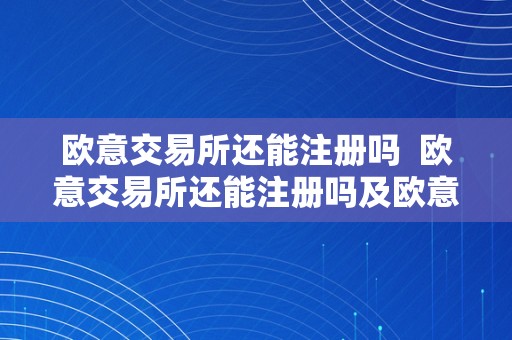 欧意交易所还能注册吗 欧意交易所还能注册吗及欧意交易所还能注册吗知乎