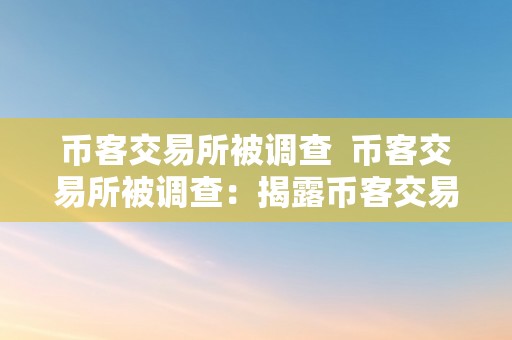 币客交易所被调查 币客交易所被调查:揭露币客交易所涉嫌诈骗的内幕