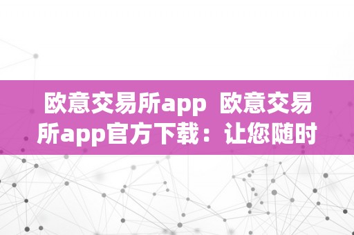 欧意交易所app 欧意交易所app官方下载:让您随时随地轻松交易数字货币
