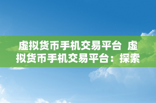 虚拟货币手机交易平台 虚拟货币手机交易平台:探索数字货币世界的便捷之路
