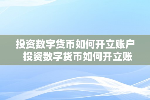 投资数字货币如何开立账户 投资数字货币如何开立账户