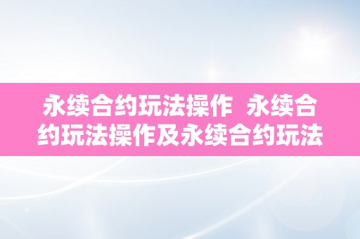 永续合约玩法操作 永续合约玩法操作及永续合约玩法操作视频