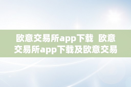 欧意交易所app下载 欧意交易所app下载及欧意交易所app官方下载