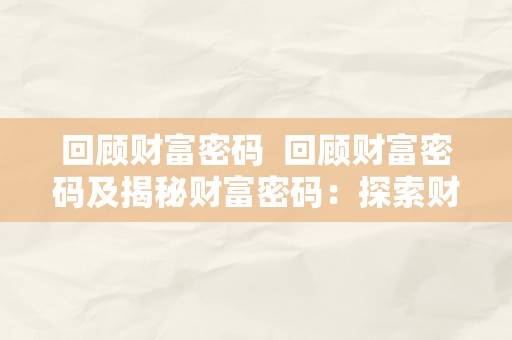 回顾财富密码 回顾财富密码及揭秘财富密码:探索财富积累的奥秘