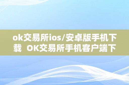 OK交易所是一家全球知名的数字资产交易平台,为了方便用户进行交易,OK交易所推出了手机客户端版本,用户可以通过手机随时随地进行交易。OK交易所的手机客户端支持iOS和安卓系统,用户可以根据自己的手机系统选择相应的下载方式。