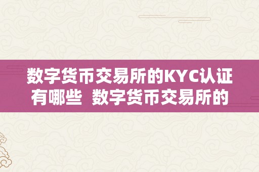 数字货币交易所的KYC认证有哪些 数字货币交易所的KYC认证有哪些及数字货币KYC什么意思